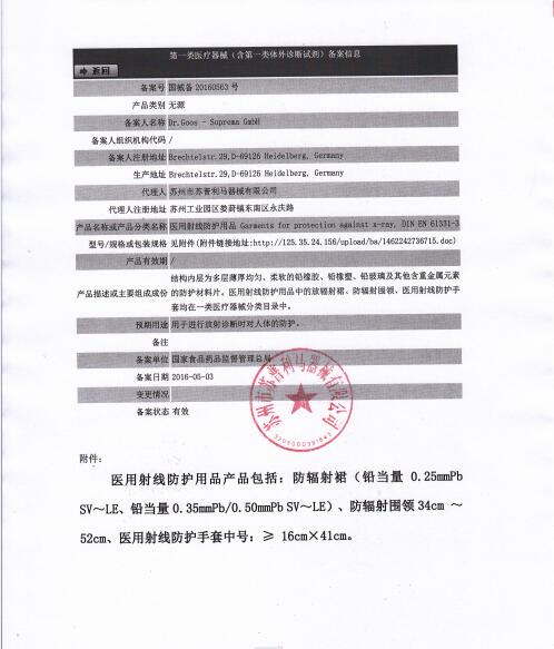 蘇州市蘇普利馬器械有限公司是專業(yè)從事醫(yī)用X射線防護(hù)系列用品、裝置、代理德國Dr.Goos-Suprema Gmbh.顧斯博士-蘇普利馬有限公司生產(chǎn)的原裝進(jìn)口鉛衣及醫(yī)用觀片燈的生產(chǎn)銷售企業(yè).生產(chǎn)的X射線防護(hù)圍裙均來自美國SHIELDING公司的最新型超薄型防護(hù)材料,,具有防護(hù)性能可靠、穿戴舒適、輕便柔軟、操作自如等諸多優(yōu)點.產(chǎn)品均通過相關(guān)X射線檢測機(jī)構(gòu)的檢測,達(dá)到產(chǎn)品標(biāo)準(zhǔn)的要求.X射線醫(yī)用膠片觀察燈。是采用全LFD燈光技術(shù)。具有重量輕,光源均勻,亮度高,無頻閃,不變型,使用壽命長等特點。均取得了生產(chǎn)許可及醫(yī)查看更多>>